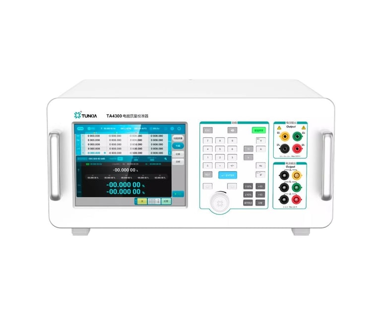 El TA4300 es un calibrador de calidad de energía de tres fases diseñado para probar y verificar analizadores de calidad de energía y medidores eléctricos con la más alta precisión. Integra funciones avanzadas de salida de voltaje y corriente, generación de armónicos e interarmónicos, prueba de energía AC y simulación de fluctuaciones o parpadeos de tensión, caídas, elevaciones y desequilibrios trifásicos.