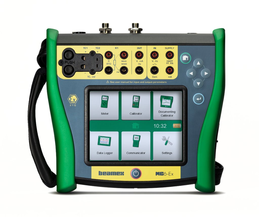 El MC6-Ex de Beamex es el calibrador y comunicador intrínsecamente seguro más exacto del mundo. Ofrece capacidades de calibración para presión, temperatura y diferentes señales eléctricas, además de funcionar como comunicador multiprotocolo para instrumentos Fieldbus. Cuenta con certificaciones ATEX, IECEx y EE.UU., por lo que puede utilizarse de forma segura en todas las áreas clasificadas como peligrosas.