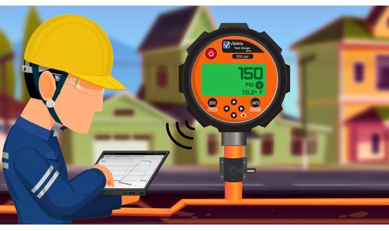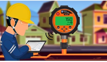 Aplicación crítica para pruebas neumáticas en redes de gas natural, permitiendo monitorear presión de forma segura, reducir riesgos operativos y mejorar la trazabilidad de los resultados.